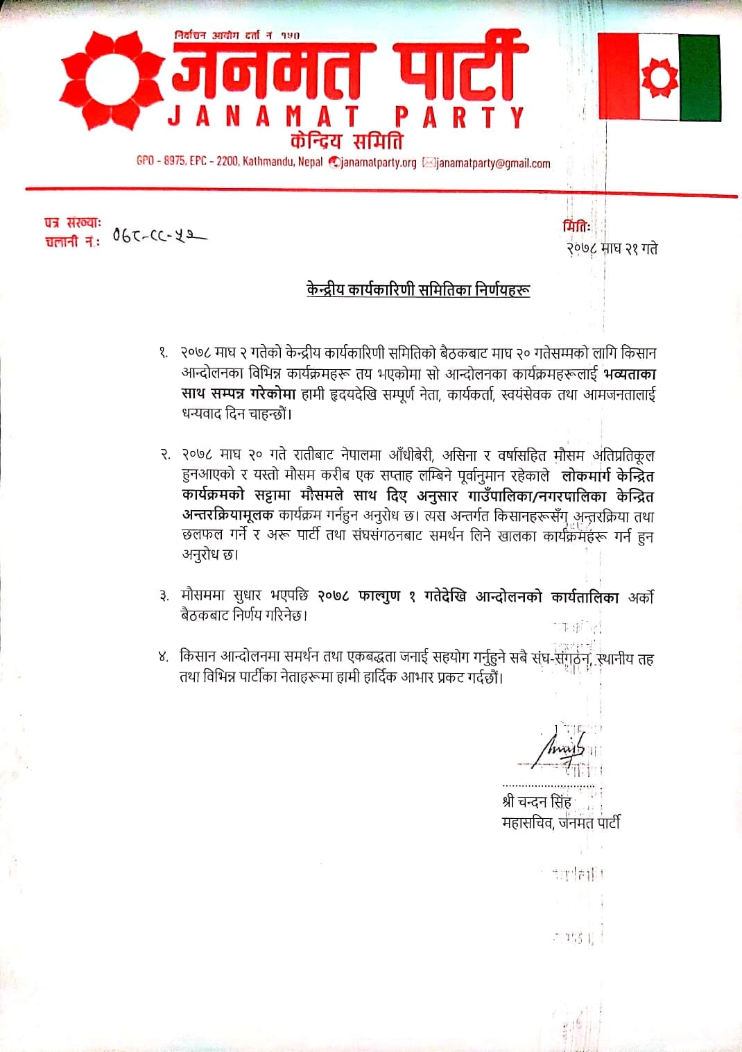 जसपा नेपाल र लोसपा बिच एकता भएको सम्झौता पत्र