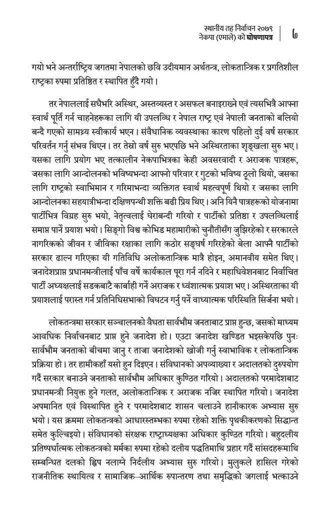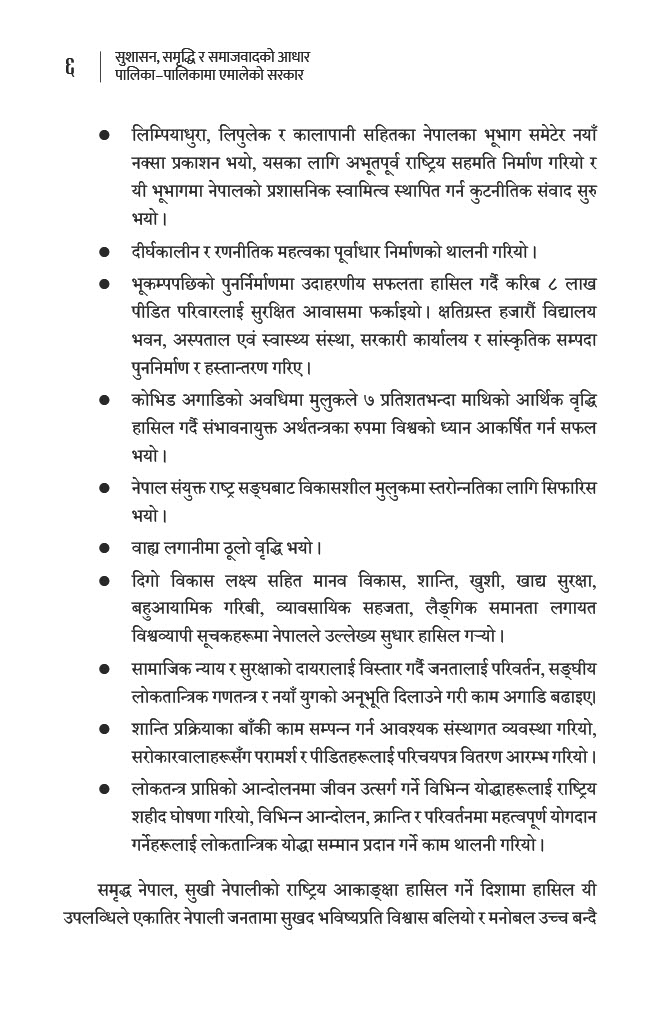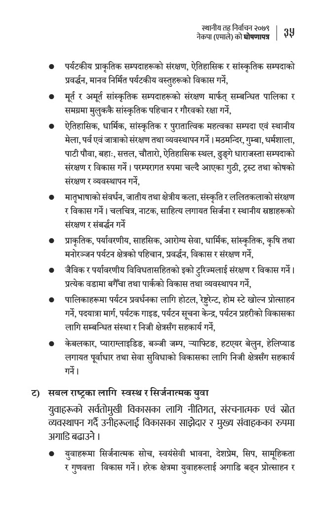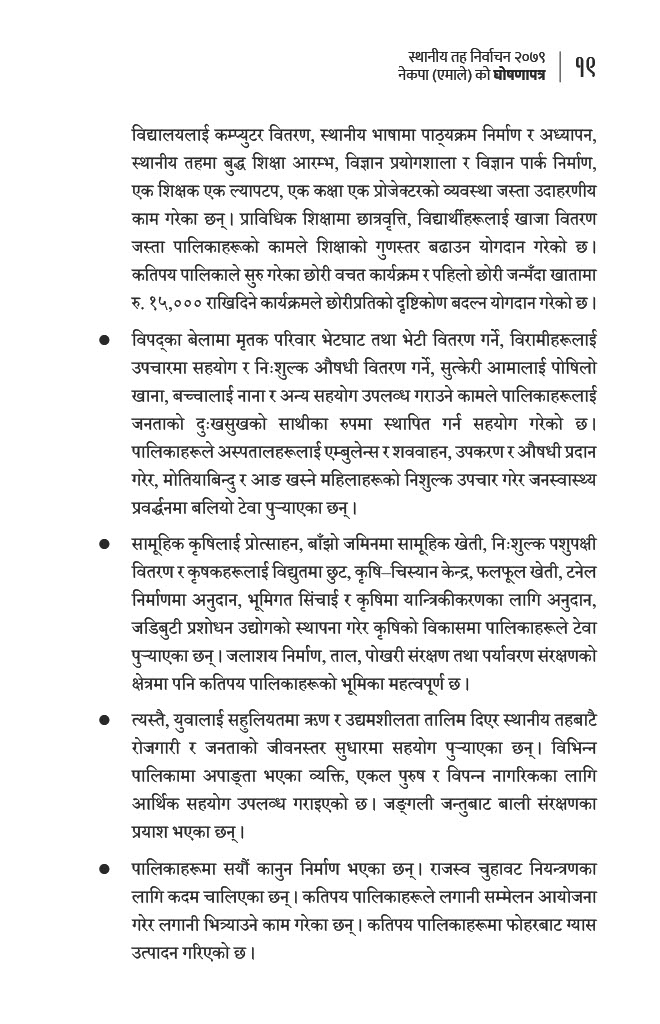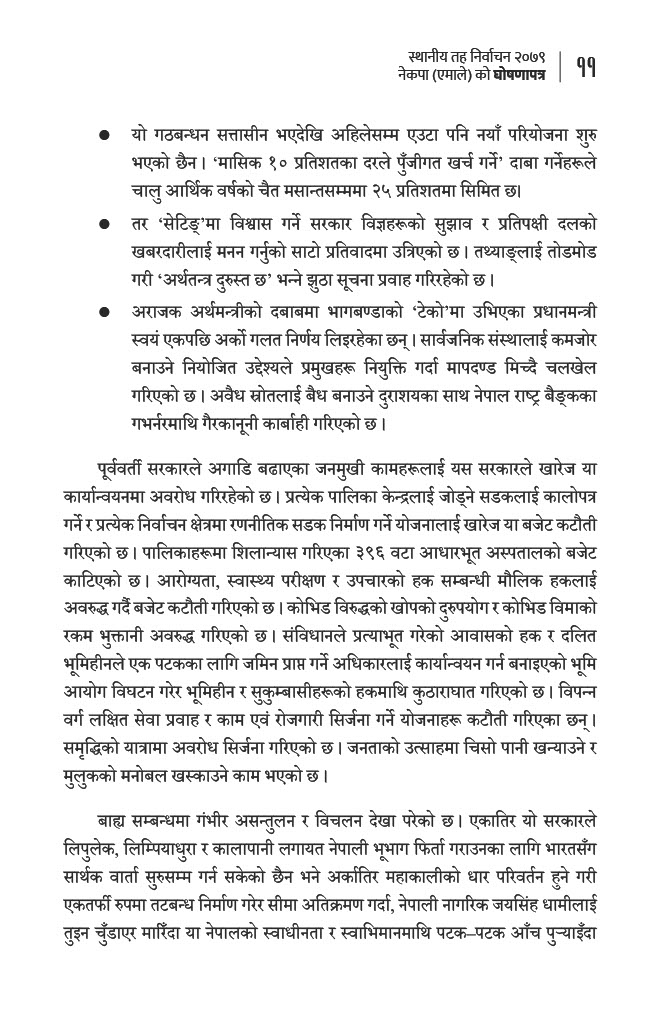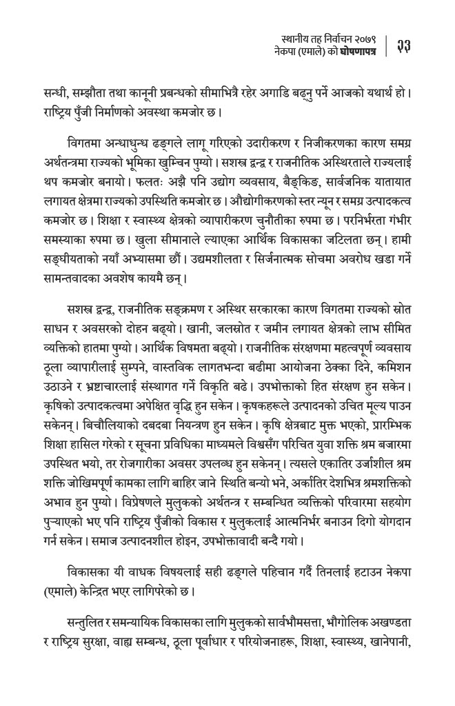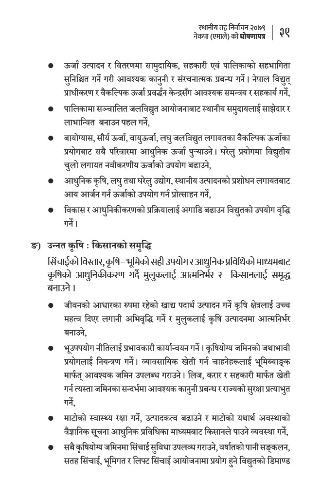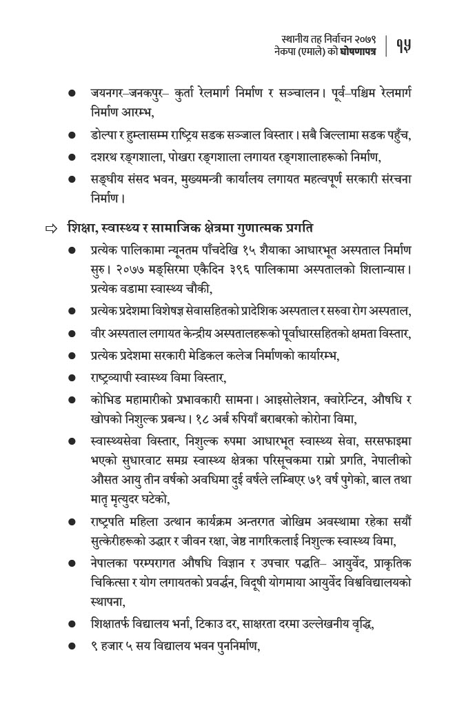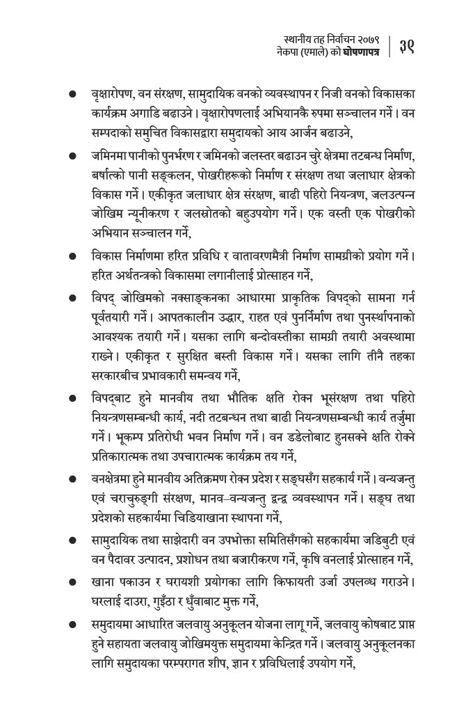 यस्तो छ एमालेले स्थानीय तह चुनावका लागि तयार पारिएको घोषणापत्र