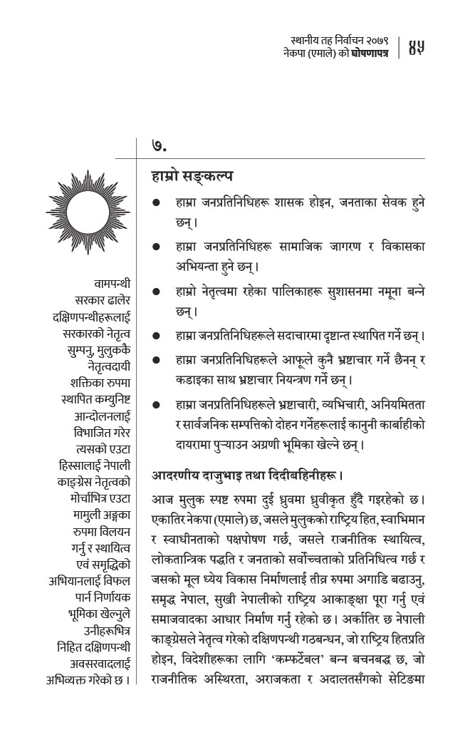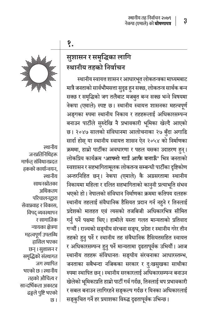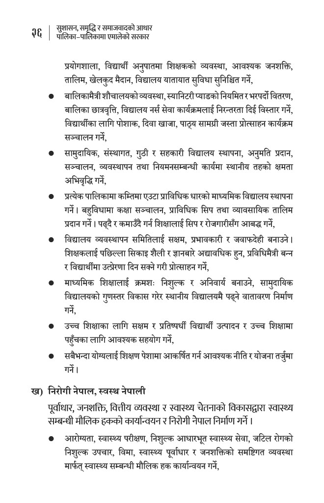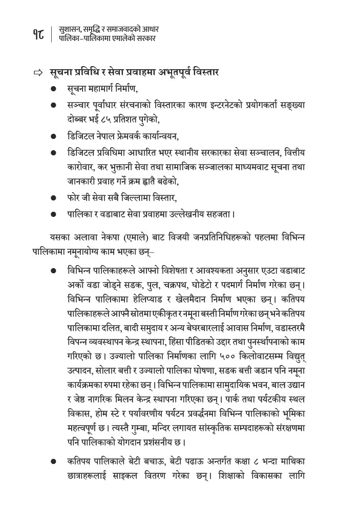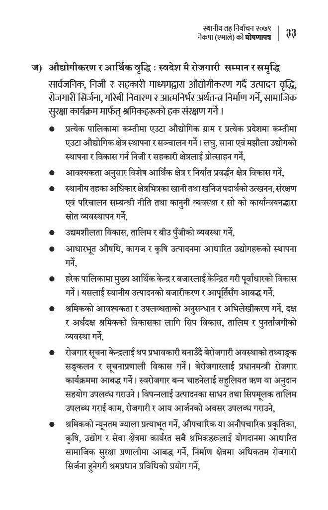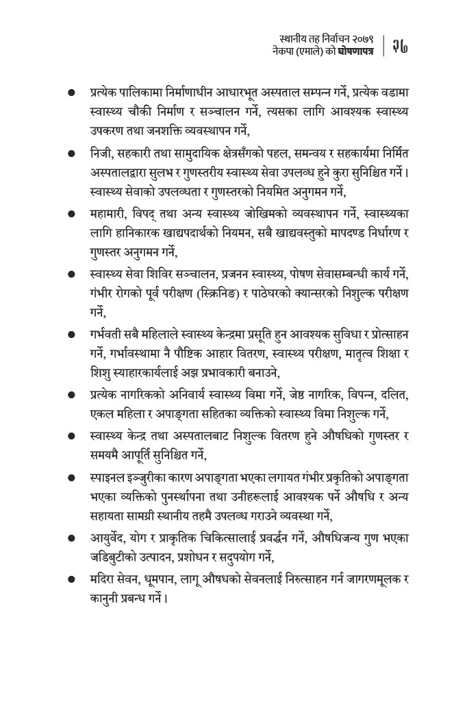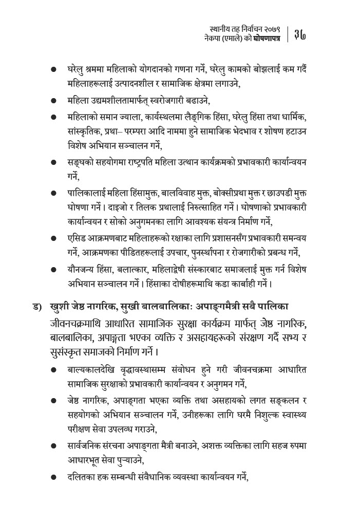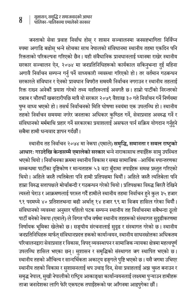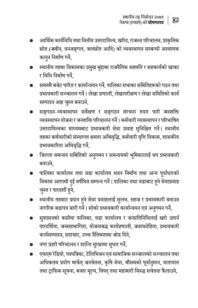 यस्तो छ एमालेले स्थानीय तह चुनावका लागि तयार पारिएको घोषणापत्र