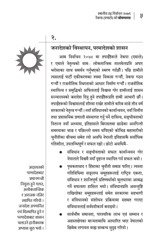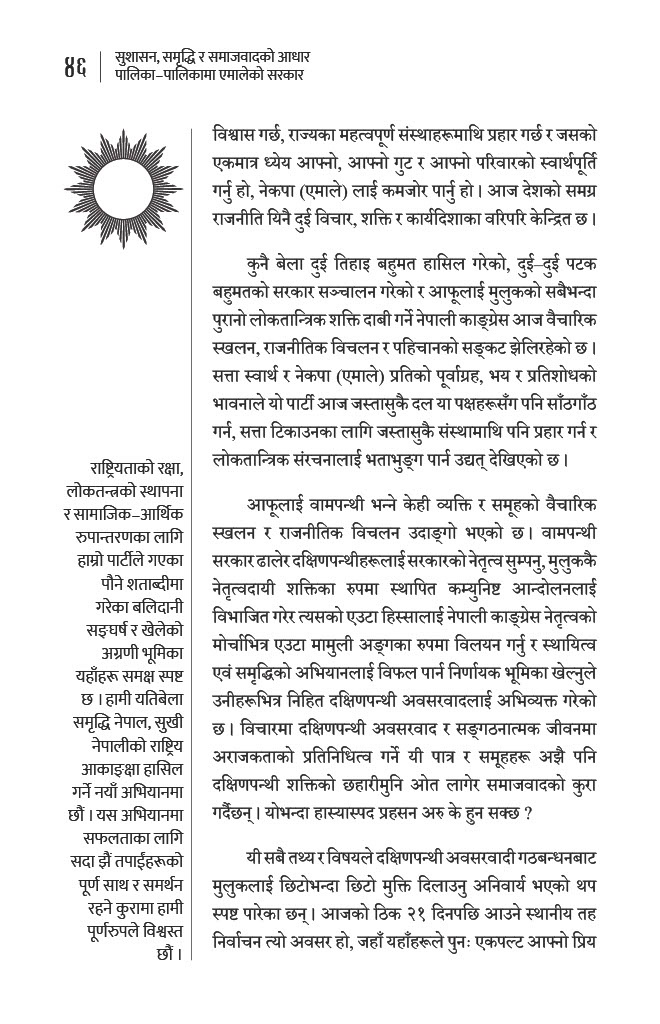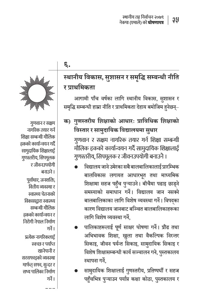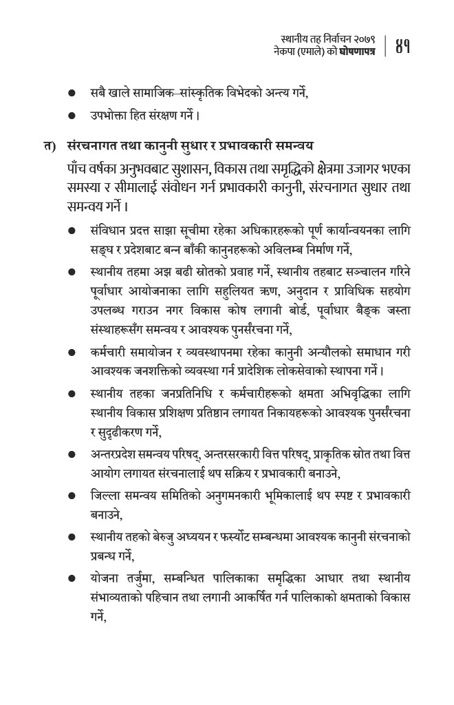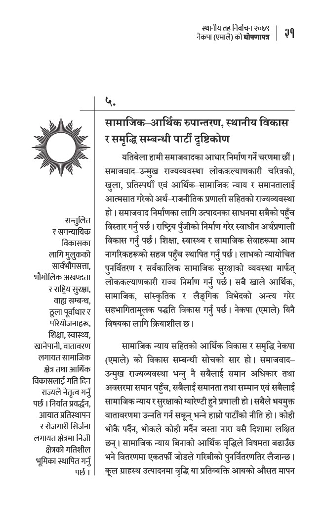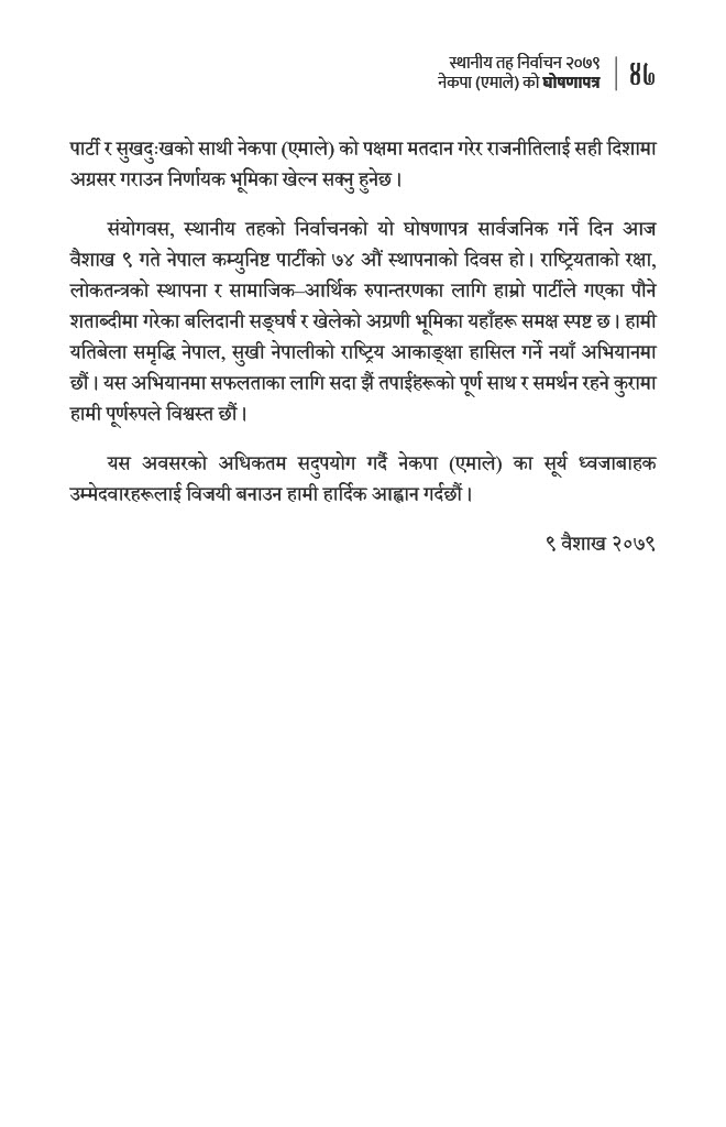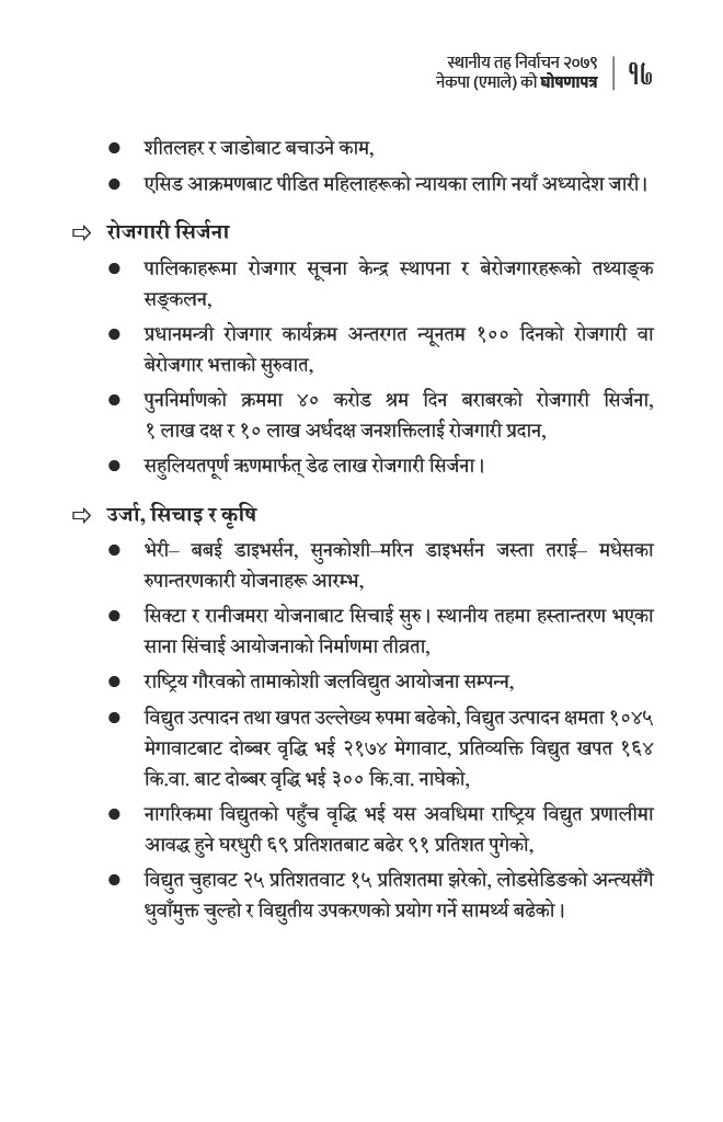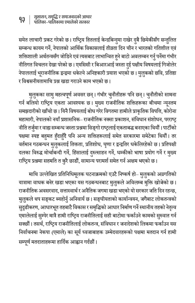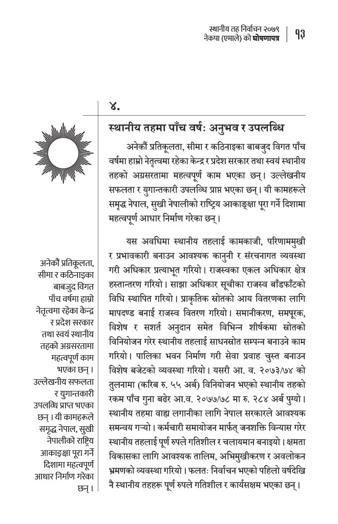 यस्तो छ एमालेले स्थानीय तह चुनावका लागि तयार पारिएको घोषणापत्र