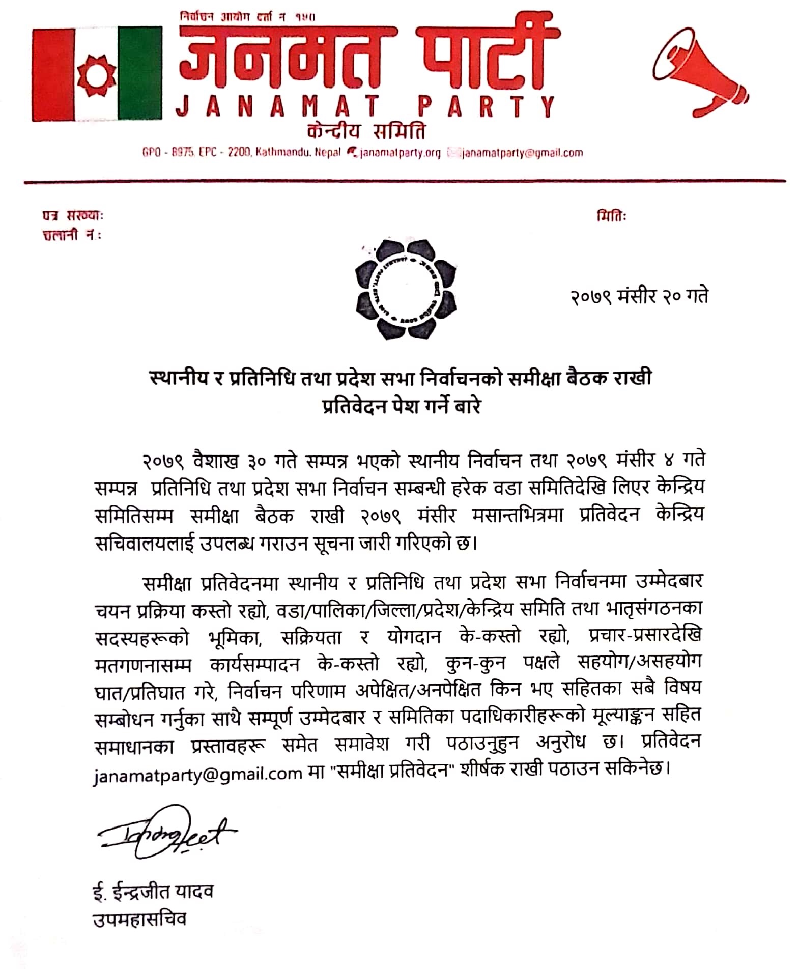 मंसिरमसान्तभित्र चुनावी समिक्षात्मक प्रतिवेदन बुझाउन जनमतको निर्देशन