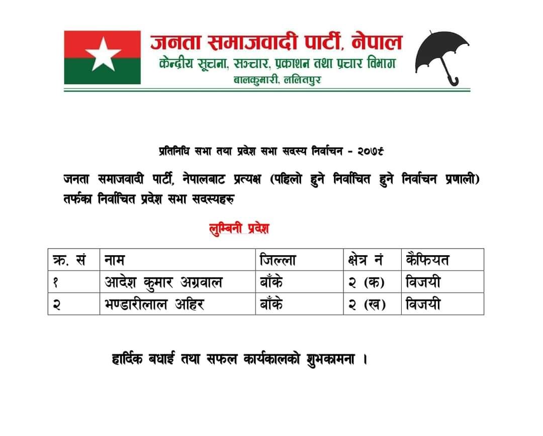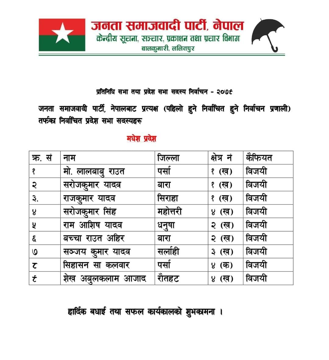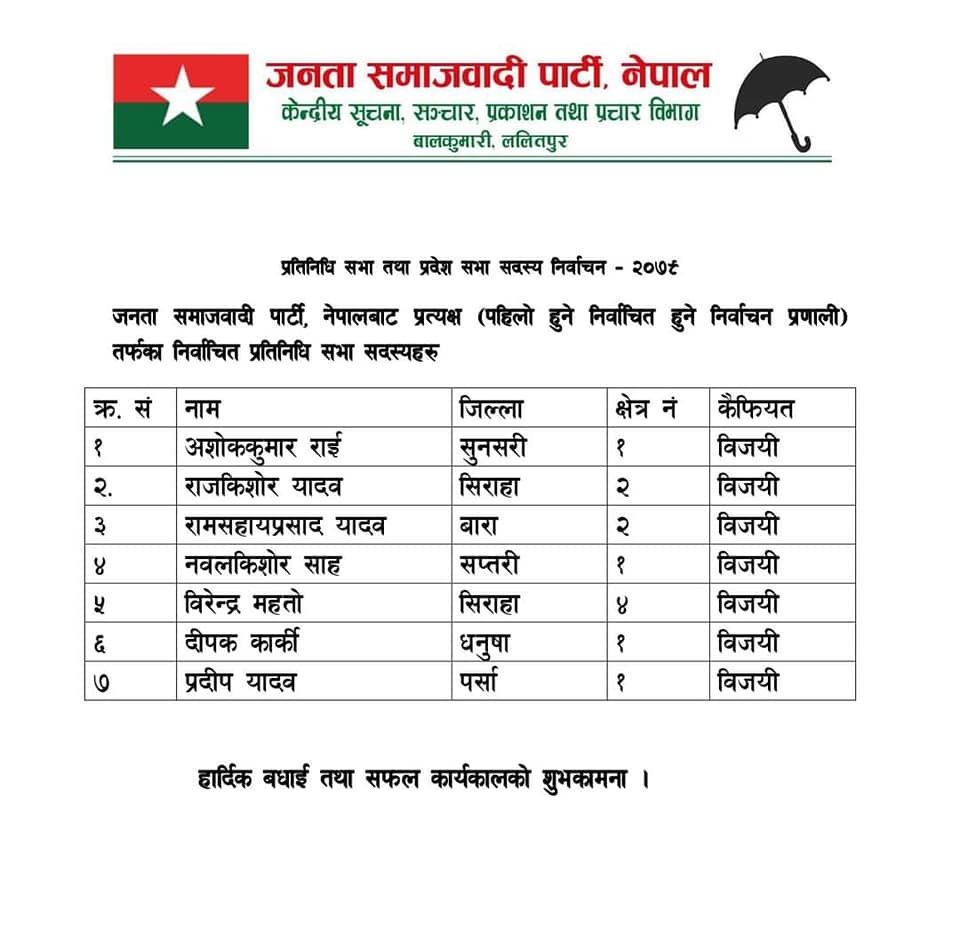 जसपाबाट प्रतिनिधि सभा र प्रदेश सभामा प्रत्यक्षबाट सांसदहरु