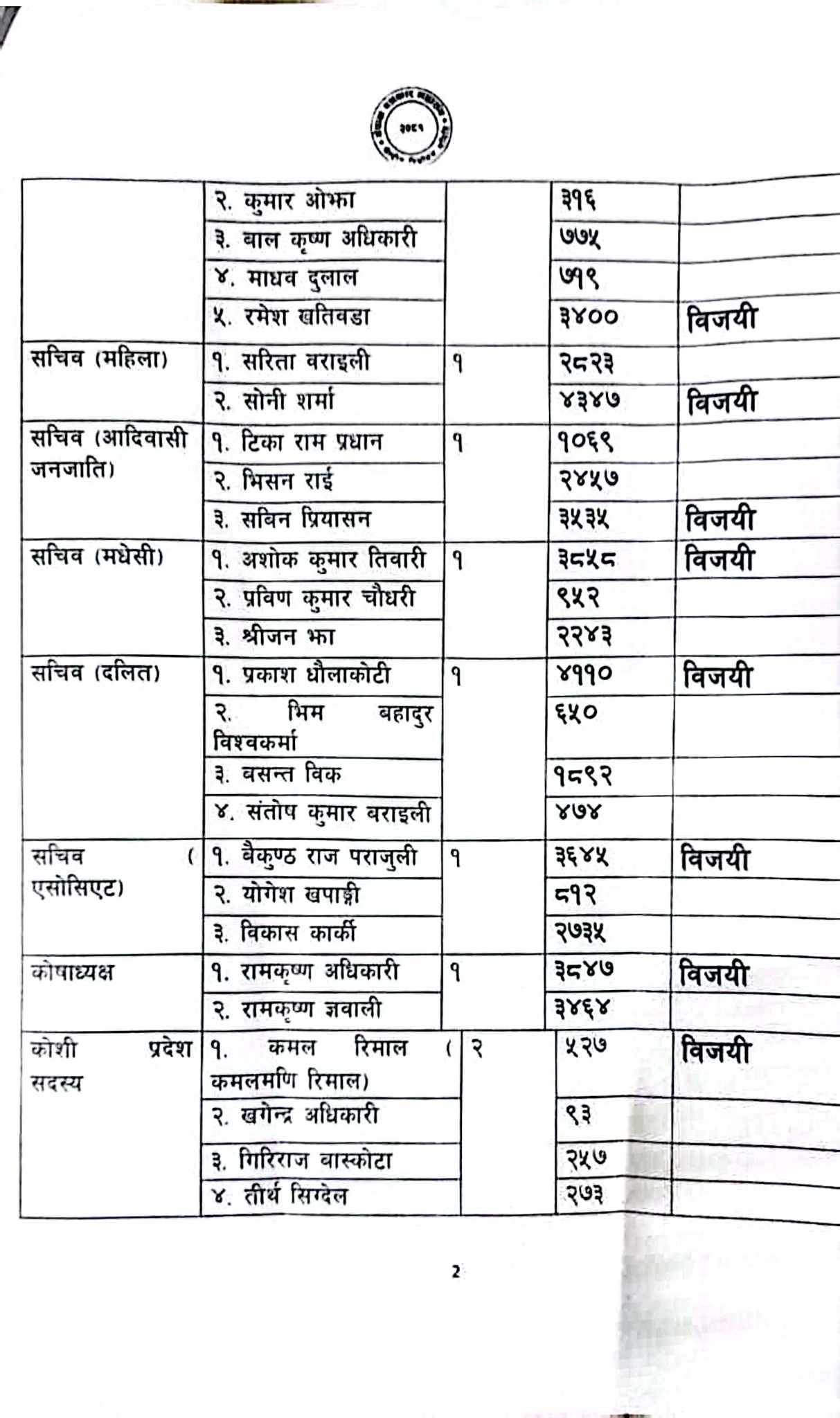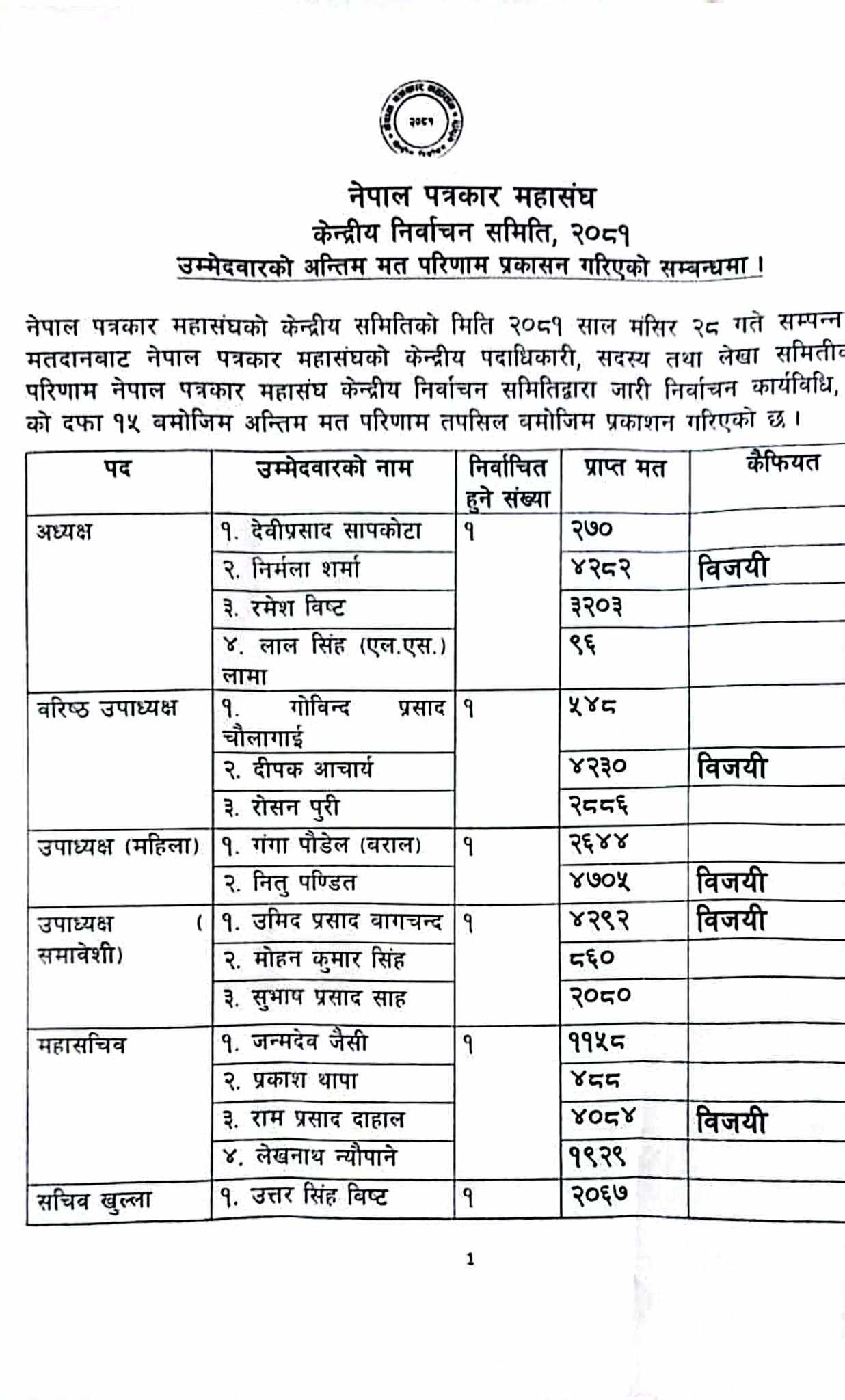 नेपाल पत्रकार महासंघमा निर्वाचित केन्द्रीय समिति (मतपरिणामसहित)